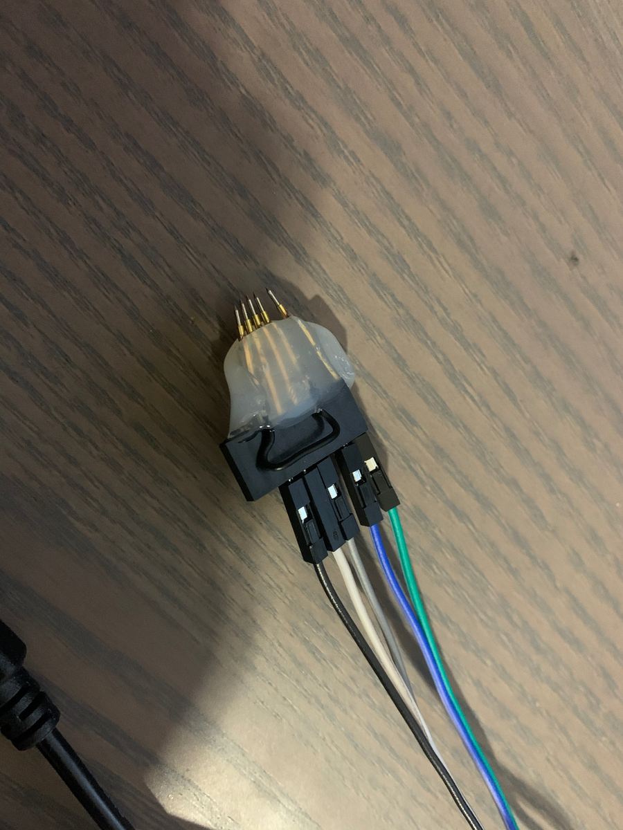 In dem Video wird erklärt, dass man am besten einen Adapter baut um Kontakt an winzigen Löchern zu bekommen. Meine Variante ist mit viel Liebe, Pogopins und Heißkleber.