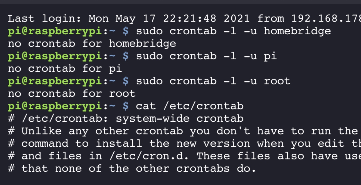 sudo crontab -l -u homebridge