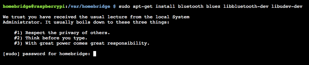 Mach das nicht über das blöde Web-Terminal, sondern logge dich als pi auf deinem Raspi ein. Der User homebridge hat keine Rechte, irgendwas zu installieren oder mit root-rechten auszuführen.