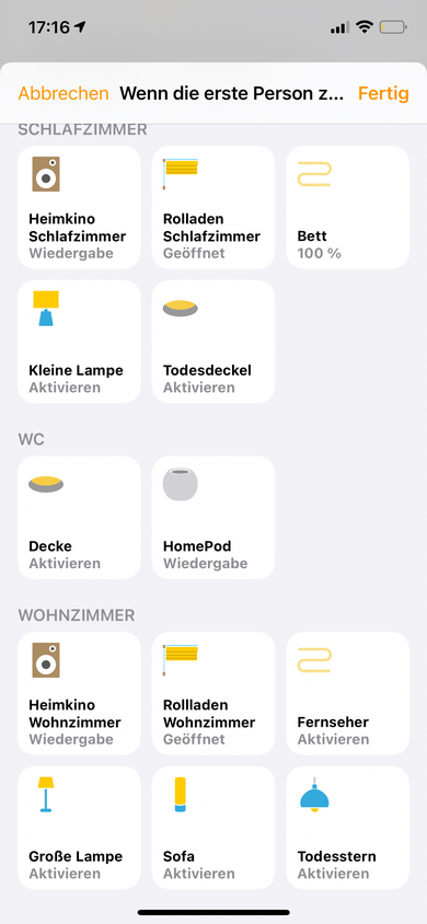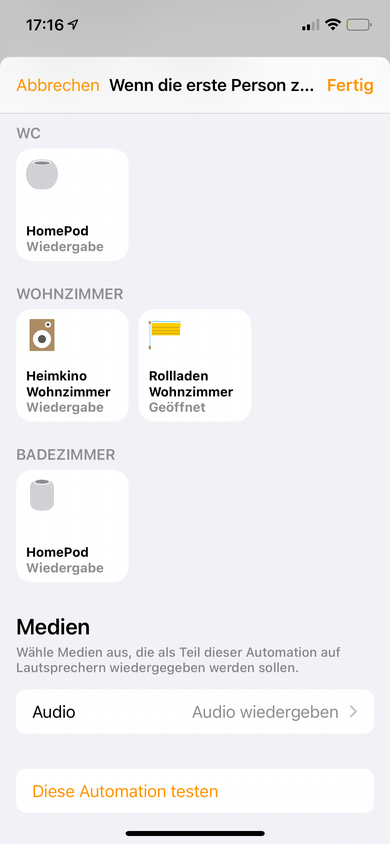 Aaalles klar. Ja also deine Vermutung war tatsächlich richtig. Die Automationen passieren, sobald es um irgendwen und nicht den ersten oder letzten geht. Es ist aber kein Apple Gerät hier außer meinem Mac, wenn ich das Haus verlasse... Und der Standort wird von meinem iPhone/Watch geteilt