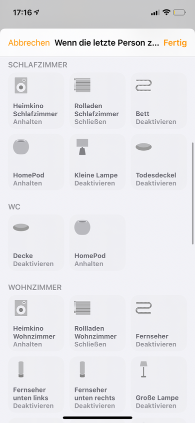 • Ansonsten hilft es auch mal, entweder die Steuerzentrale neu zu starten und/oder von icloud ab- und anmelden……