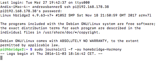 wenn ich sudo journalctl -f -au homebridge-Harmony eingebe. passiert überhaupt nix