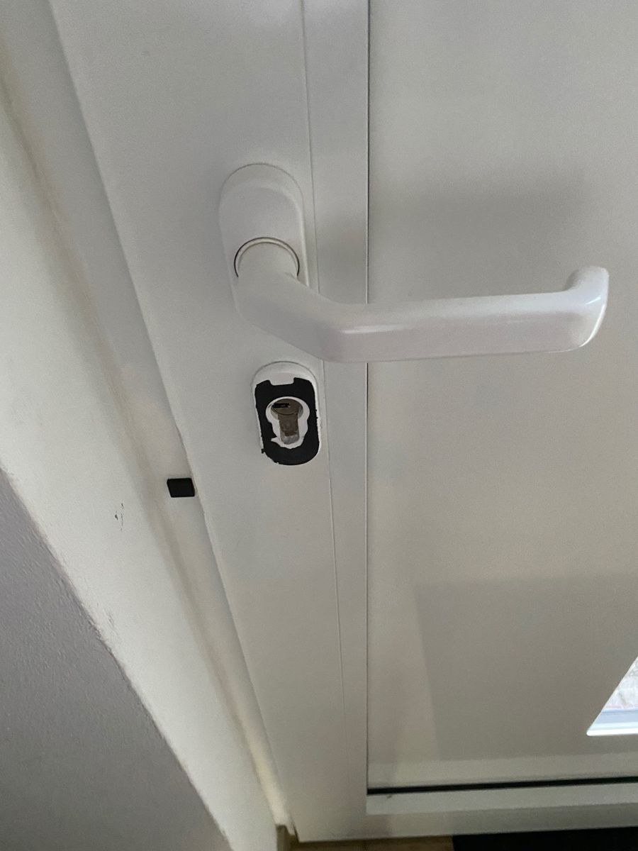 Bei mir klebt das Schloss auf der Blende rund um das Schloss. Leider hat sich inzwischen der Nuki-Klebestreifen in sich aufgelöst.