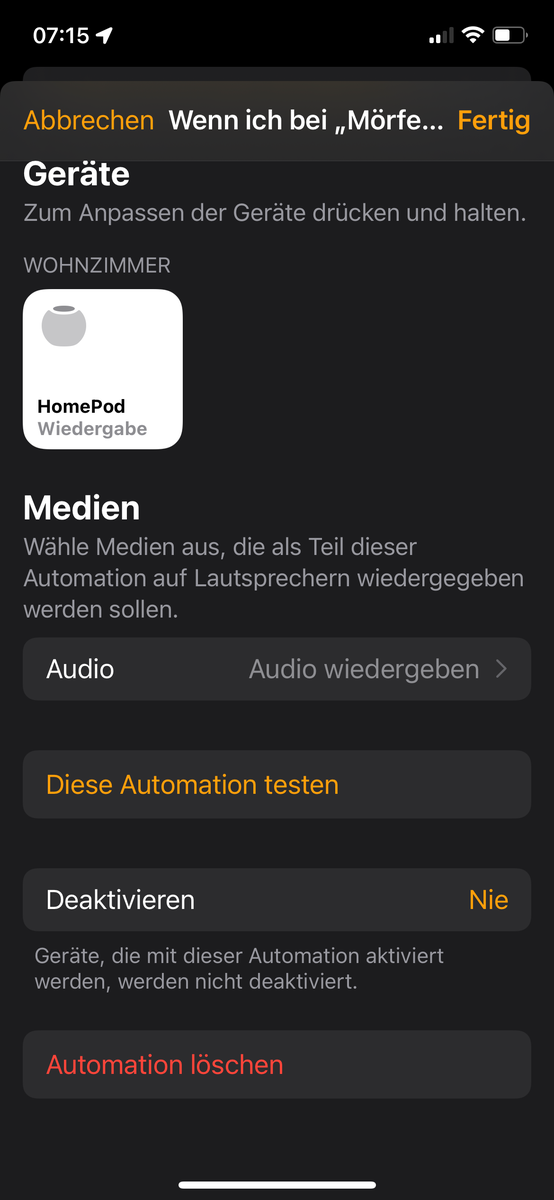 ich habe einen HomePod mini als Steurzentrale und ein merkwürdiges Verhalten bei meiner Automation: