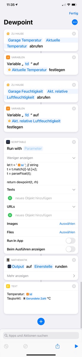 Hätte es gerne im Home App angezeigt wann man lüften kann ( Taupunkt ).