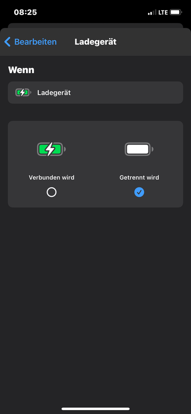 Als Auslöser nutzen wir das Ladegerät, genauer gesagt, sobald dieses verbunden wird. Dabei spielt es übrigens keine Rolle, ob das iPhone kabelgebunden oder kabellos geladen wird.