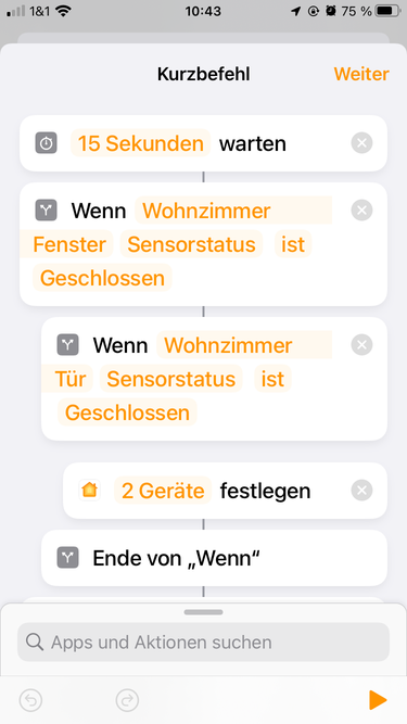 • Und was sehr kurios ist: die Kurzbefehle funktionieren in allen Räumen nicht, außer in einem. Die Kurzbefehle sind aber überall exakt nach dem selben Schema aufgebaut.