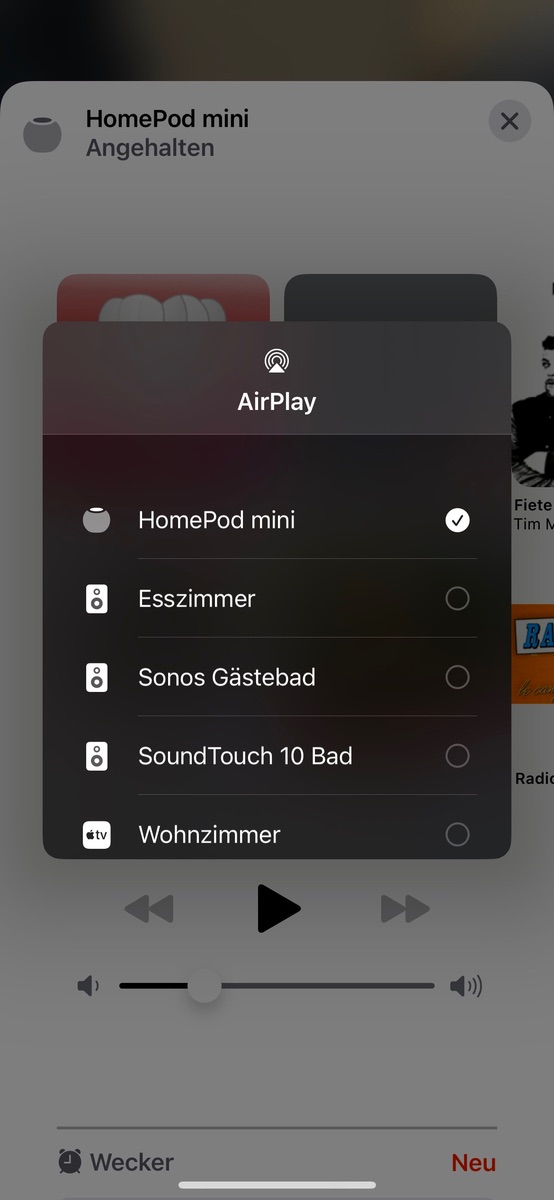 (das müssen wir auch, da sonst schonmal der Homepod Mini Flur oder Küche mit anschlägt und dann dort die musik beginnt)