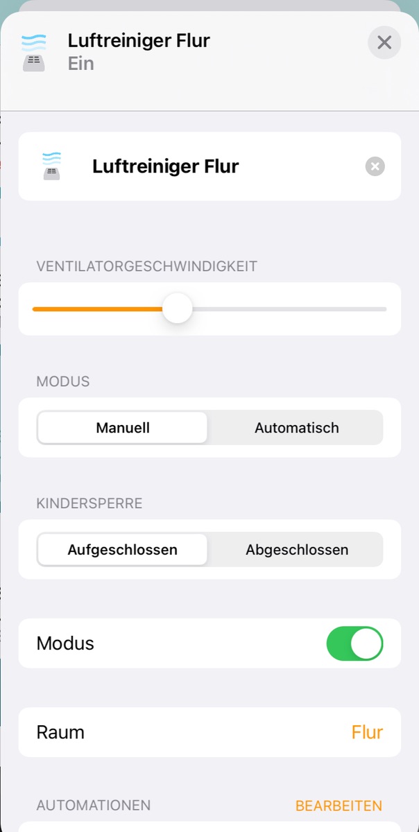 Ich wollte nur einmal kurz berichten, dass ich sehr angetan von den neuen Ikea Luftreinigern bin. Die Integration in Homekit ist hervorragend und besser als bei allen anderen Luftreinigern, von denen ich die Berichte kenne. Sie reagieren absolut zuverlässig und sogar in der Home App und über Siri kann ich von den %-Angaben einfach wieder auf den Automatikmodus stellen. Sogar die Kindersicherung ist über die Home App zu steuern.