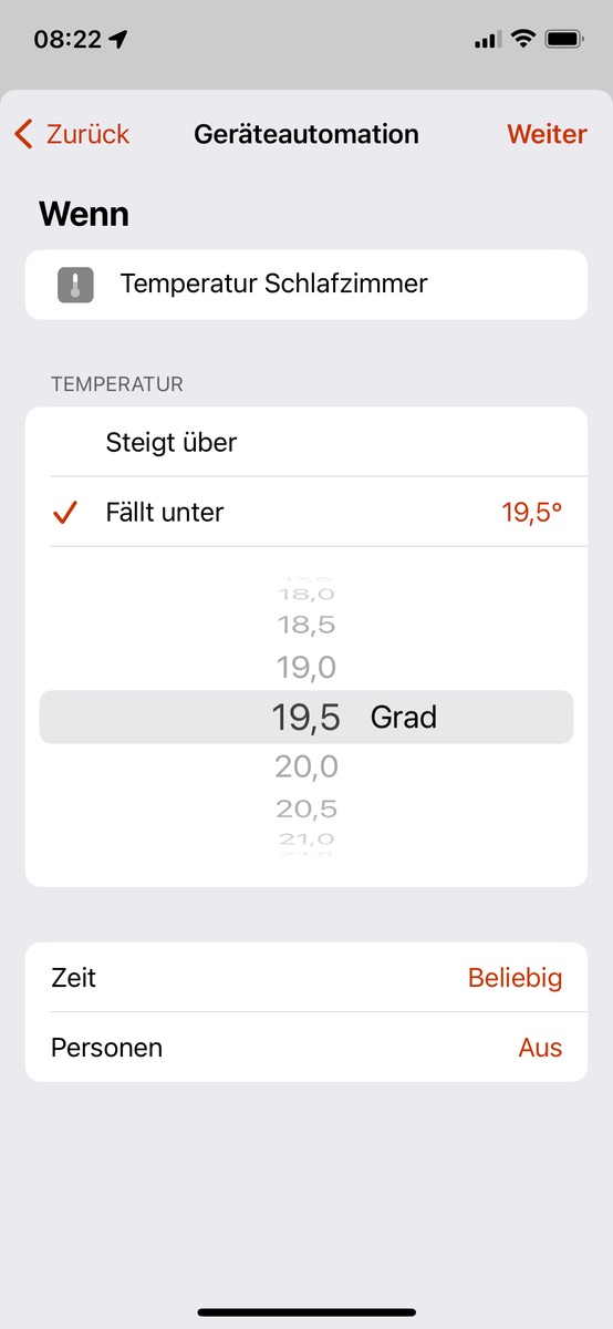 Damit wird der Luftbefeuchter automatisch eingeschaltet, sobald die Luftfeuchtigkeit zu niedrig wird und schaltet sich selbstständig wieder aus, wenn sich der Wert normalisiert hat. In unserer Geräteübersicht findet ihr sowohl HomeKit-fähige Luftbefeuchter als auch Luftfeuchtigkeitssensoren.