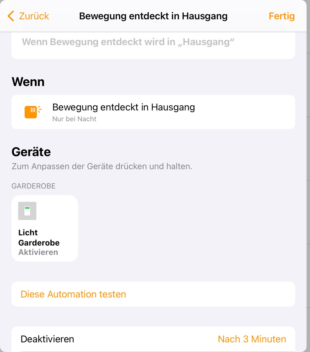 Ps.: HomeKit reagiert erst nach ca. 10-15 Sekunden auf ein ein „keine Bewegung“ vom Bewegungsmelder.