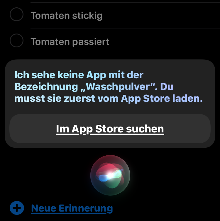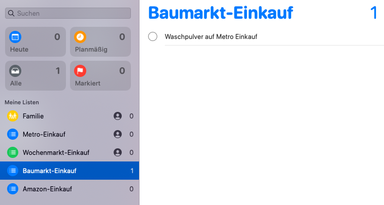 Nun kaufen meine Frau und ich immer mit der Erinnerungsapp als Einkaufszettel ein.
