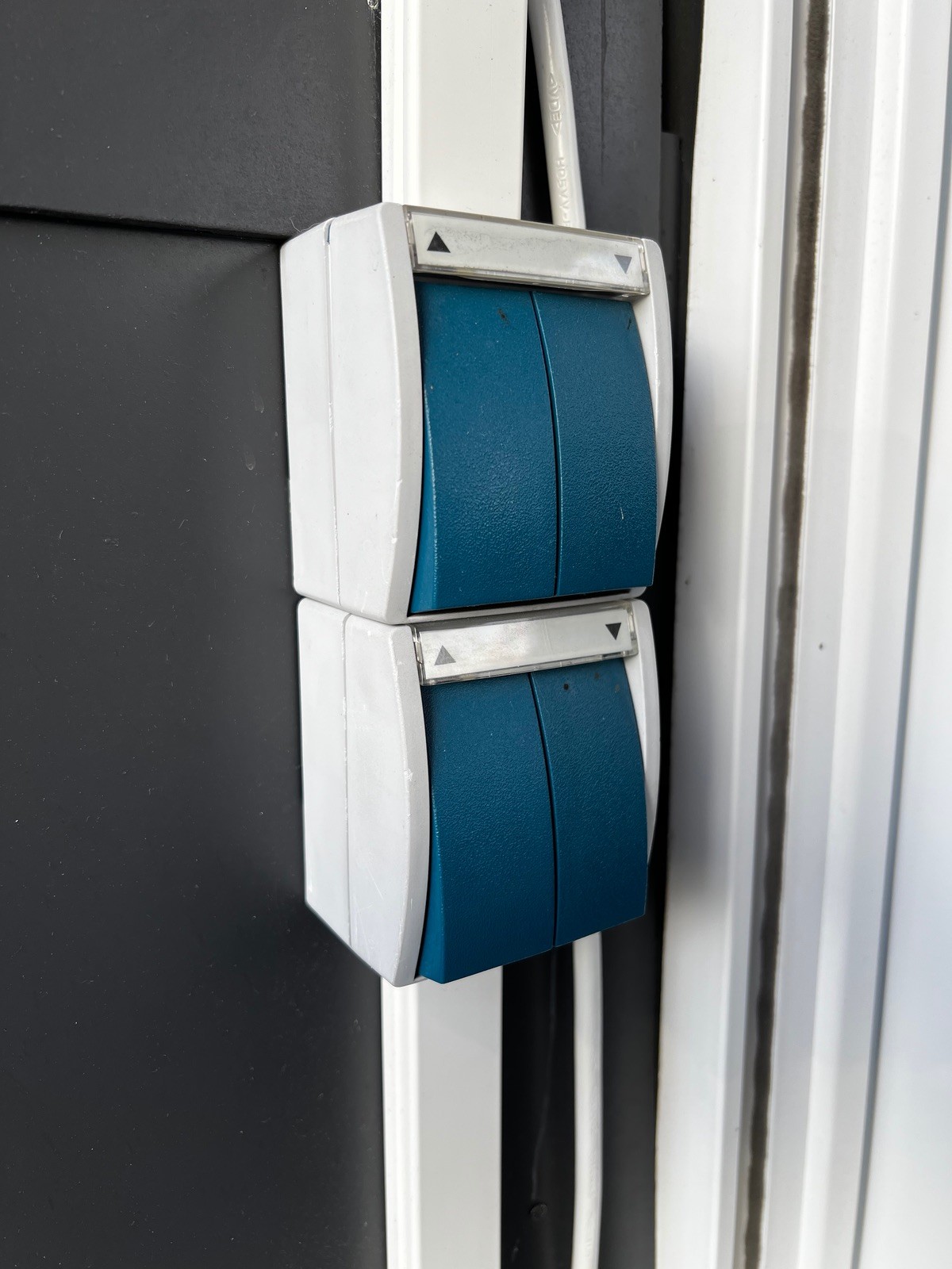 Draussen (überdacht) habe ich auch zwei Schalter mit zwei Wippen für meine zwei Markisen, auch diese sollten smart werden für HomeKit.