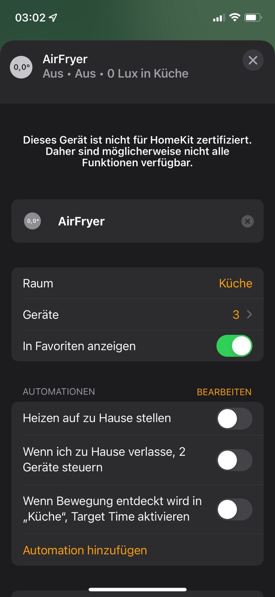 Da dieses Plugin homebridge-miot hier noch gar nicht mit einem eigenen Thread vertreten ist, was mich verwundert und ich gerade im ersten Anlauf erfolgreich meinen Xiaomi Air Fryer in HomeKit damit eingebunden habe, wird es wohl Zeit dafür. ![]()
