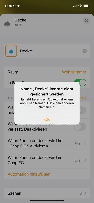 usw... Die Lampen sind alle unter meinen Favoriten, beim Deckenlicht Esstisch steht aber dort noch der Raumname davor. Also: "Wohnzimmer Deckenlicht Esstisch". Bei allen anderen ist das nicht so. Wenn ich in den Raum "Wohnzimmer" wechsle, steht der Button auch wieder richtig da. Wie kommt das und wie kann ich das ändern?