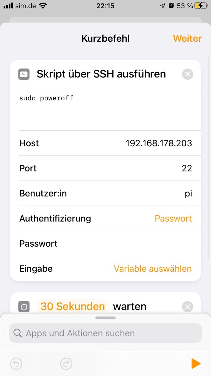 - Shell command zu dem Raspberry mit power off Befehl