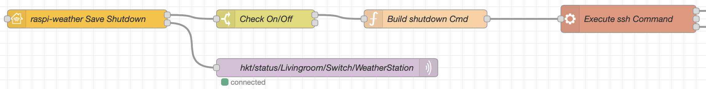 habs jetzt doch mit cmdtrigger gelöst. Zum Ausschalten der Steckdose wird also erst ein SSH Befehl zum Ambilight Pi über cmdtrigger abgesetzt, 15 Sekunden gewartet, dann die Steckdose ausgeschalten. War jetzt am einfachsten, wenn auch irgendwie unschön.