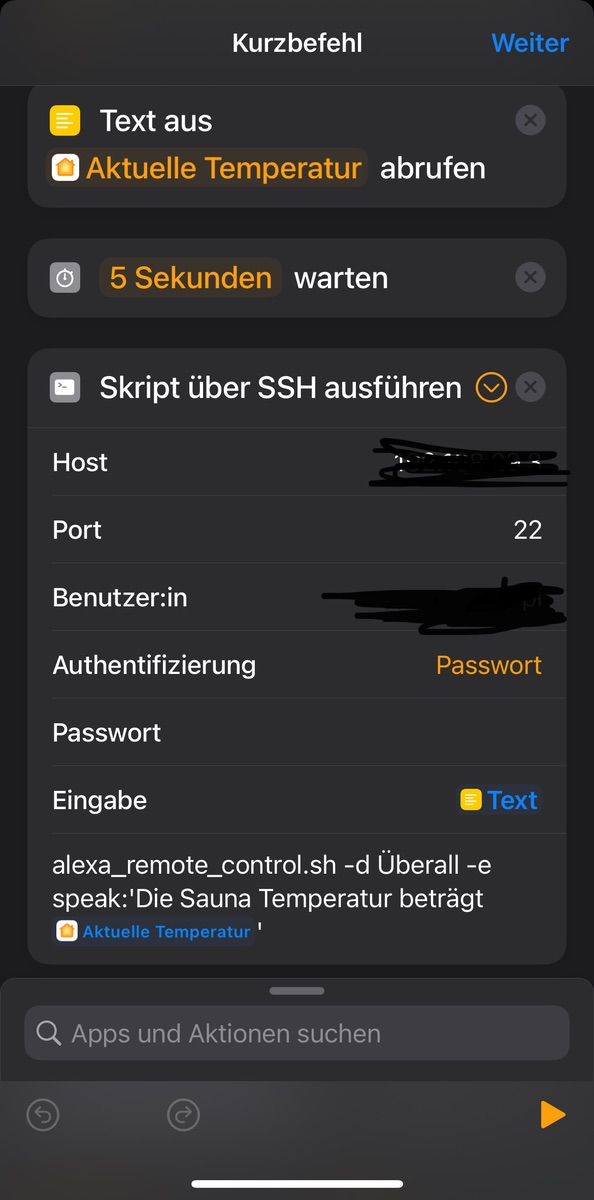 Anschließend soll Alexa eine Ansage machen. Wenn ich innerhalb des Kurzbefehls einen Testlauf mache, funktioniert das auch alles Bestens.