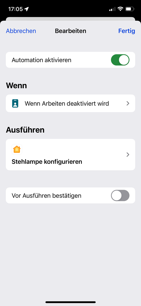 Ich möchte gerne fürs Homeoffice eine Wenn-Dann-Automation bzw. Kurzbefehl erstellen. Bisher habe ich leider keinen passenden Eintrag hier oder im Netz gefunden. Wahrscheinlich ist das ganze super einfach und ich steh einfach nur auf dem Schlauch.