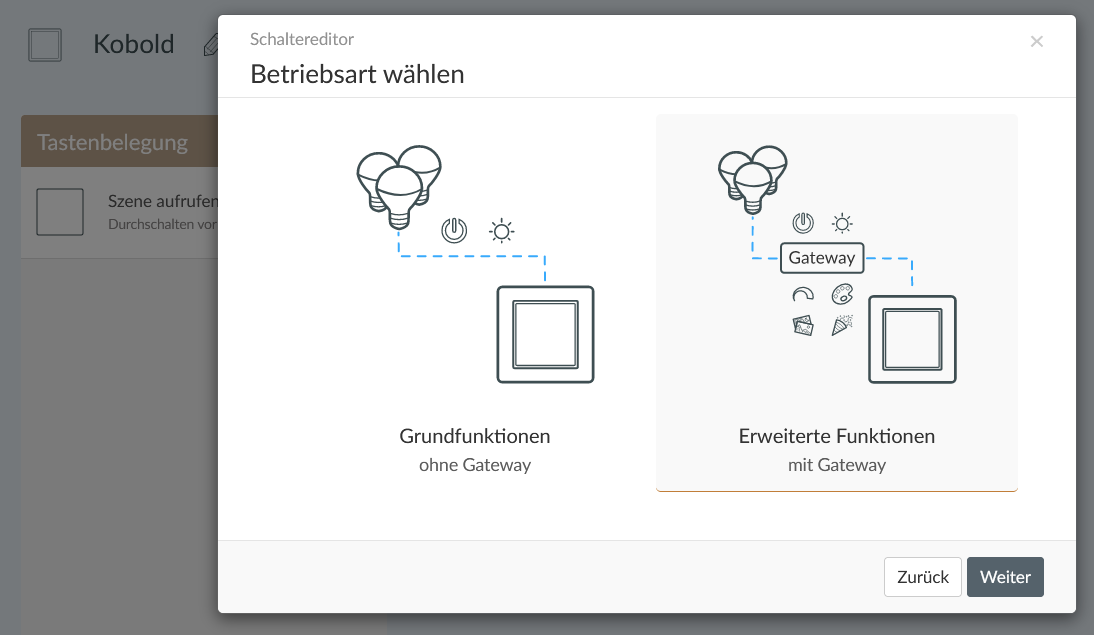Der bestehende Wandtaster wird mit dem Kobold verbunden und damit ebenso Teil des Smart Homes. Dabei gibt es mehrere spannende Betriebsarten: