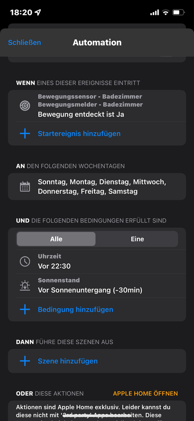 Folgendes problem, wenn morgens jemand unter der Dusche steht kann es vorkommen das der Rollladen durch eine Automation auf Position fährt. (Rollladen öffnet sich wenn die gute Morgen Szene aktiviert wird oder spätestens um 8:15 Täglich)