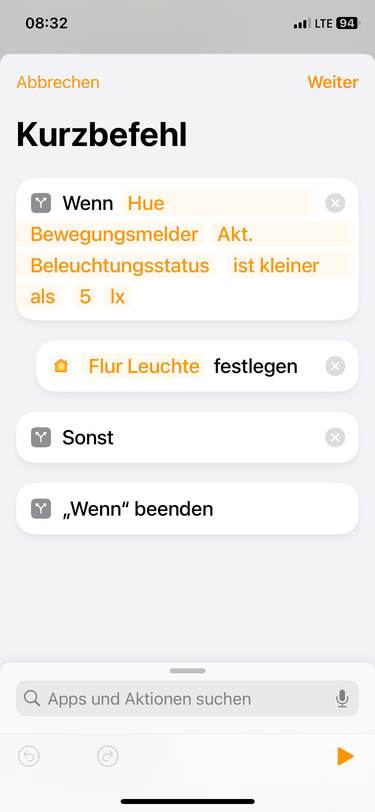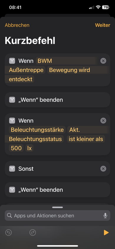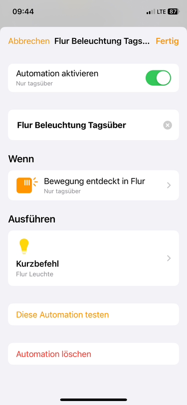 Automation > Wenn Bewegungsmelder Bewegung entdeckt > runterscrollen bei der Geräte-/Szenenauswahl auf „in Kurzbefehl konvertieren“ und nachfolgendes einbauen: