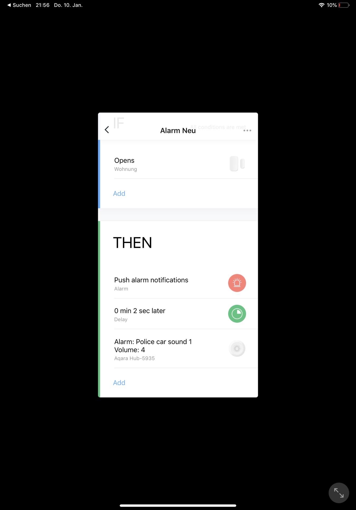 Auch weiss ich nicht wie ich in der Aqara App einstellen kann, dass ein Alarm Ton kommen soll wenn sich die Wohnungstür öffnet.