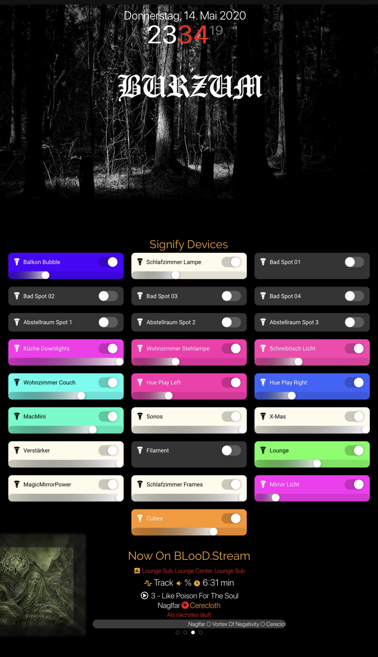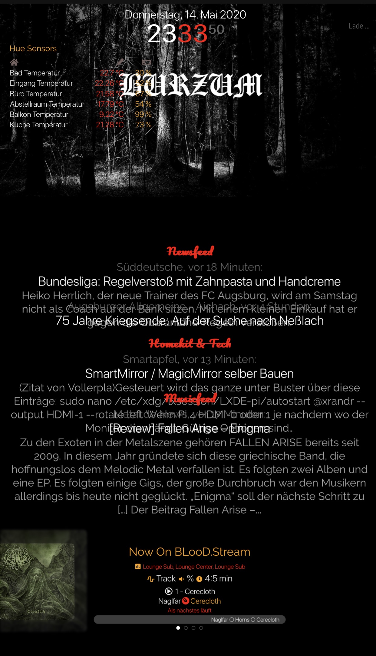 Kohle_81 Glancr bietet auch auf Ihrer Homepage ne Einkaufsliste. Hatte ich schon mal installiert ist mir aber zu statisch nutze lieber MagicMirror kann man viel mehr individualisieren. Läuft bei mir schon seit 2,5 Jahren. Hab nen 27“ Monitor von Dell gekauft und zerlegt. Habe 4 Seiten welche mit iPhone und oder Gesture Sensor gewechselt werden können. Sonos hab ich über die Jahre umgebaut und auch die Hue Sensoren eingebunden. Bilder wechseln alle 10 Minuten. Hier n paar Bildchen, Screenshots vom iPhone und ein Foto.