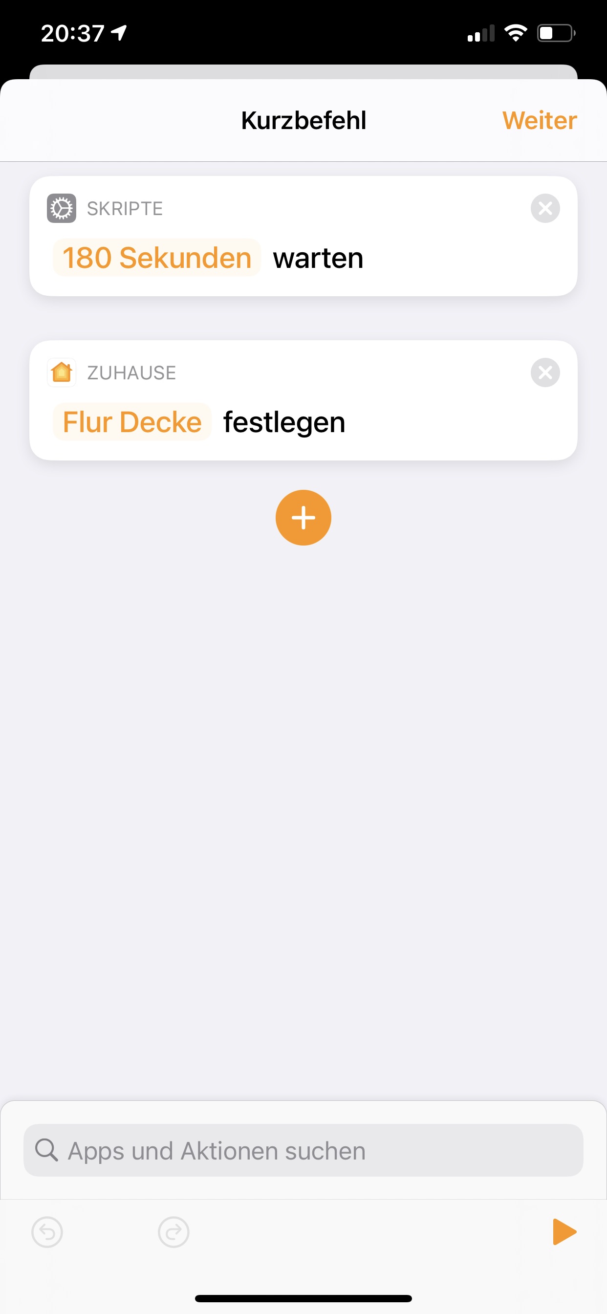 Alternativ kannst du die beiden Automationen nach der Konfiguration der „Dauer“ in der Eve App auch in der Home-App umsetzen. Im Grunde dann genauso, wie in 1. und 2. beschrieben.