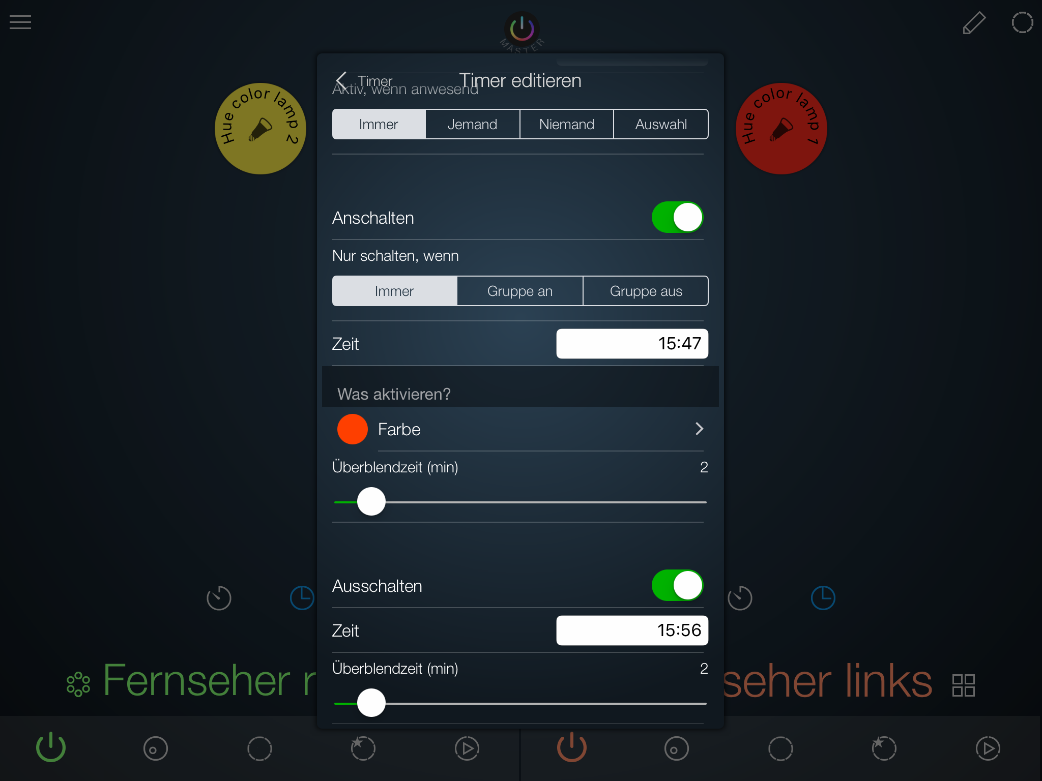 Also ich habe das mal mit zwei Hue Lampen umgesetzt und