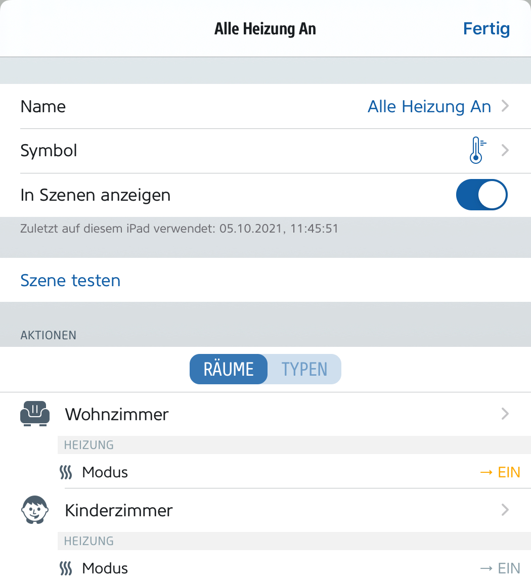 Probiere es aus, für mich ist dies Lösung optimal. Die Szenen für Aus / Ein