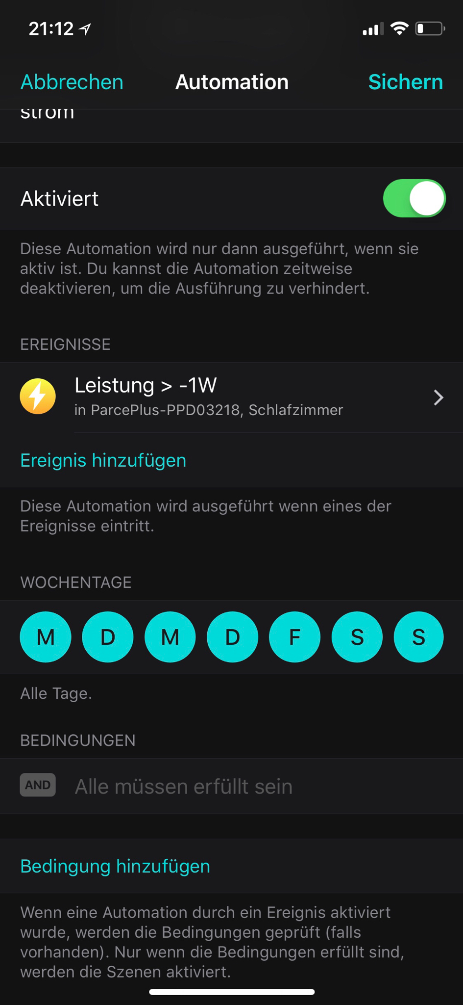 <p>Falsch, hätte ich auch vermutet, allerdings sagt in Verwendung nur aus ob ein Stecker drin steckt oder nicht. Bei eve energy hab ich es nich hinbekommen den aktuellen Strom als Auslöser zu verwenden, mit Parce Steckdosen geht es.</p>