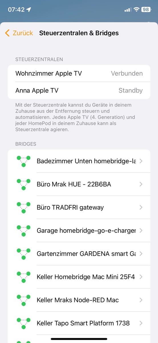 wobei das neue Apple TV 4K problemlos als Thread Border Router läuft und alle meine EVE Komponenten mit HomeKit verbindet. Jetzt läuft hier im Zimmer meiner Tochter aber noch das "alte" Apple TV, welches noch kein Thread kann im Standby Modus (siehe Screenshot). Was für den Fall, dass beispielsweise das "alte" Apple TV die HomeKit Steuerung übernimmt, würde in diesem Fall dann trotzdem das Apple TV 4K weiter als Thread Router arbeiten, auch wenn es in Home als Standby Gerät angezeigt wird? Sprich, kann auch ein im Standby Modus befindliches Apple TV weiterhin als Thread Router agieren?