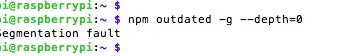 Habe jetzt im Slack Forum zu homebridge irgendwo diesen Tipp gelesen ,dass ich mit "npm outdated -g --depth=0" überprüfen soll ob ppm läuft. Wenn ich das eingebe kriege ich eine Fehlermeldung "Segmentation fault"