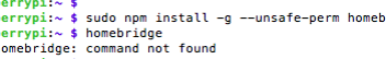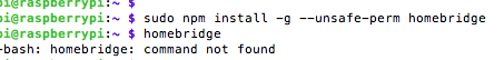 Wenn ich homebridge mittels "homebridge" starten möchte erhalte ich "-bash: homebridge: command not found" als Fehlermeldung zurück