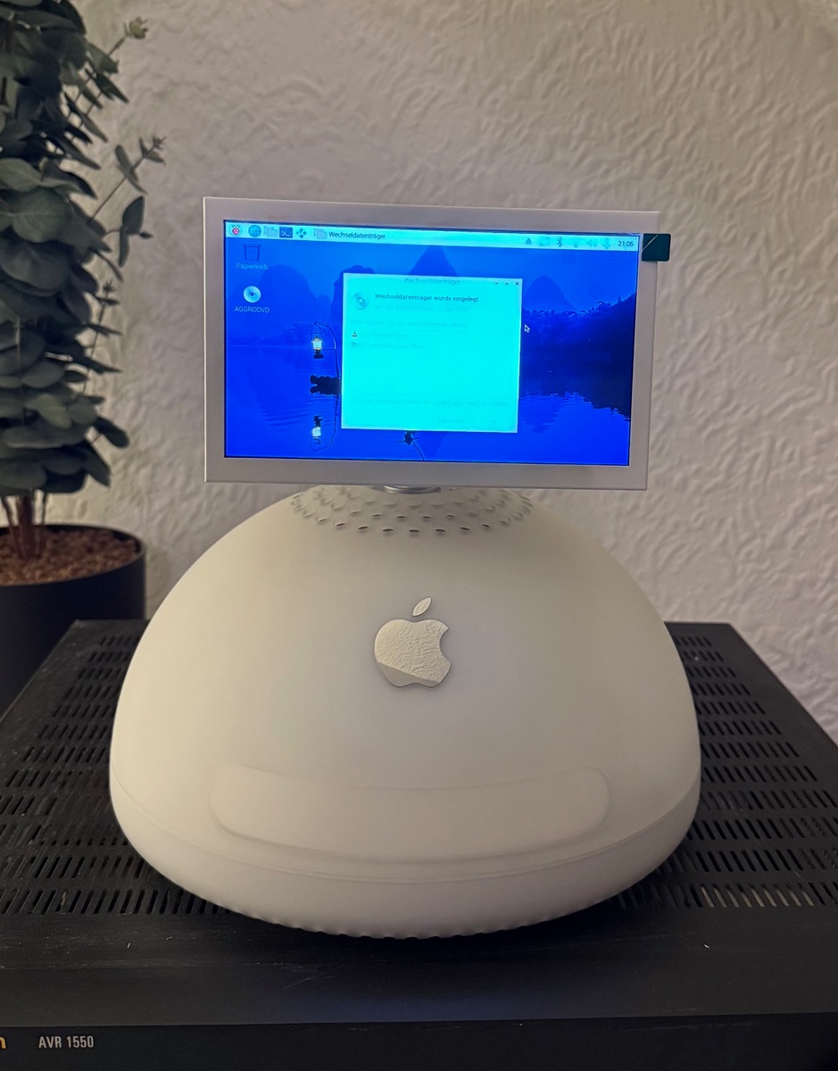 Das Original-DVD/CD-RW-Laufwerk funktioniert natürlich und kann über Homebridge gesteuert werden (homebridge-cmdswitch2 Plugin).