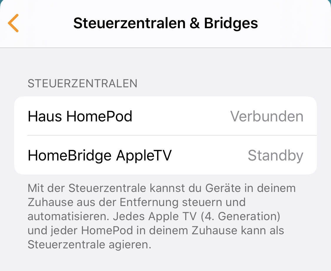 ich habe 2 Homebrigdes auf zwei unterschiedlichen Raspberrys laufen und mehrere native Homekit-Geräte/Sensoren. Als Bridge laufen ein Homepod und ein ATV4k.