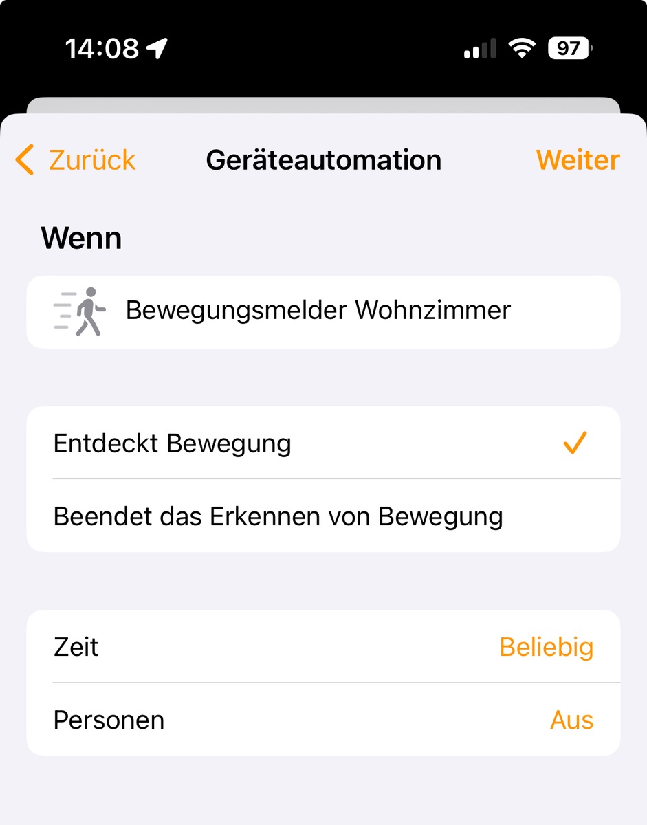 Er will ja eine Regel, wenn ein Mensch erkannt wird. Ich mache das über die Anwesenheitserkennung in HomeKit, zumindest mit der Welcome geht das.