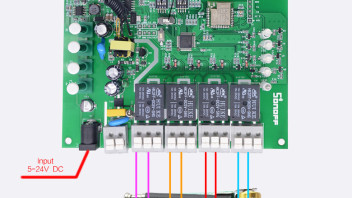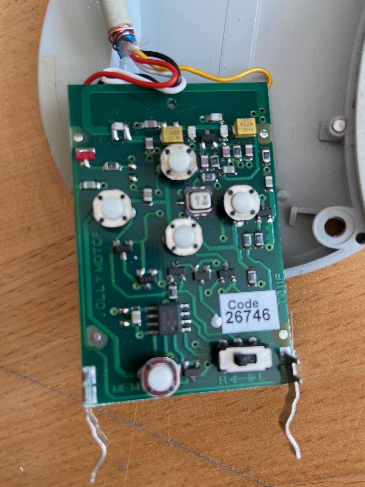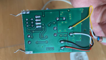 Also habe ich mich an die Arbeit gemacht. Als erstes habe ich mir die Funkfernbedienung angeschaut. Ziel war es die Taster der Fernbedienung „potentialfrei“ über Funksteckdosen zu schalten. Also habe ich Adern an die Taster gelötet und diese auf den Schaltkontakt eines Relai angeschlossen. Das Relai wird über 230V von der Funksteckdose geschaltet.