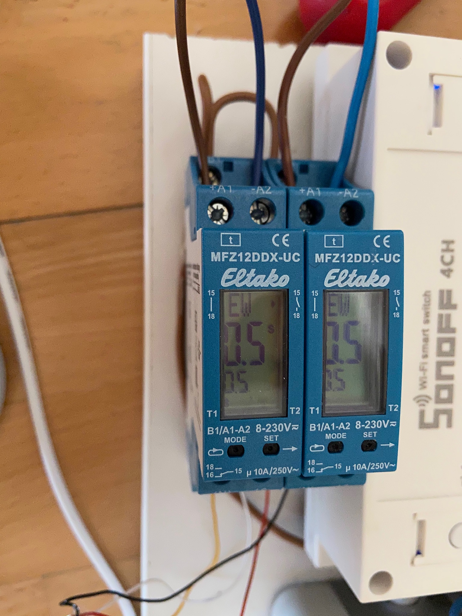 Soweit hat alles gut geklappt aber bei der Inbetriebnahme gab es dann doch ein Problem: der Broadlink schaltet die Funksteckdose ein und dadurch sendet die Fernbedienung den Befahl an die Markise. Wenn jetzt 1 sec später der aus Befehl für die Funksteckdosen kommt dann dann stören sich die beiden Funksignale bzw. die Funksteckdosen empfängt den as Befehl nicht.