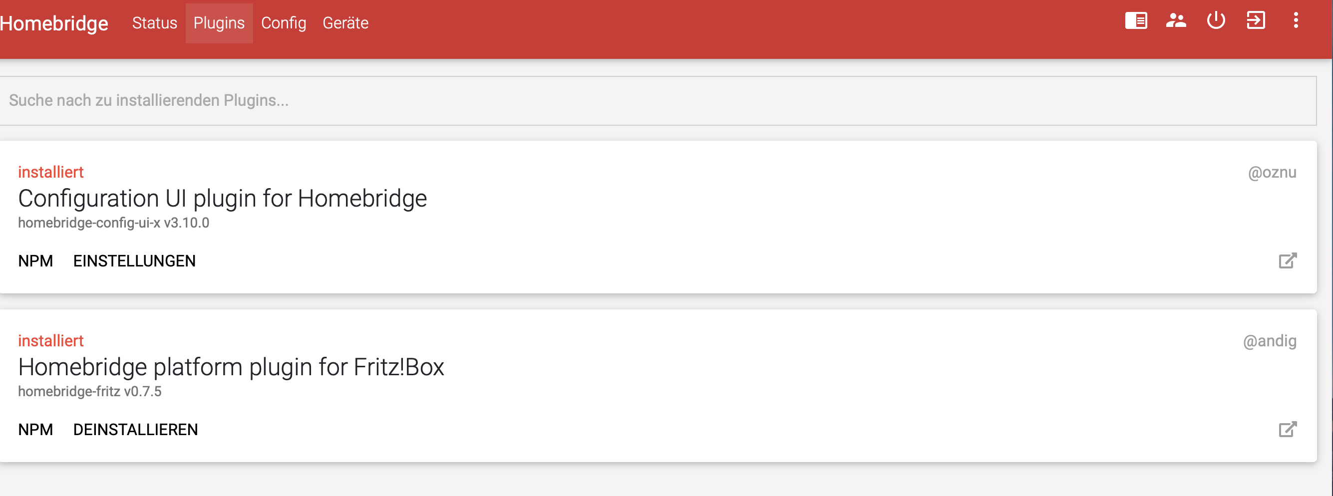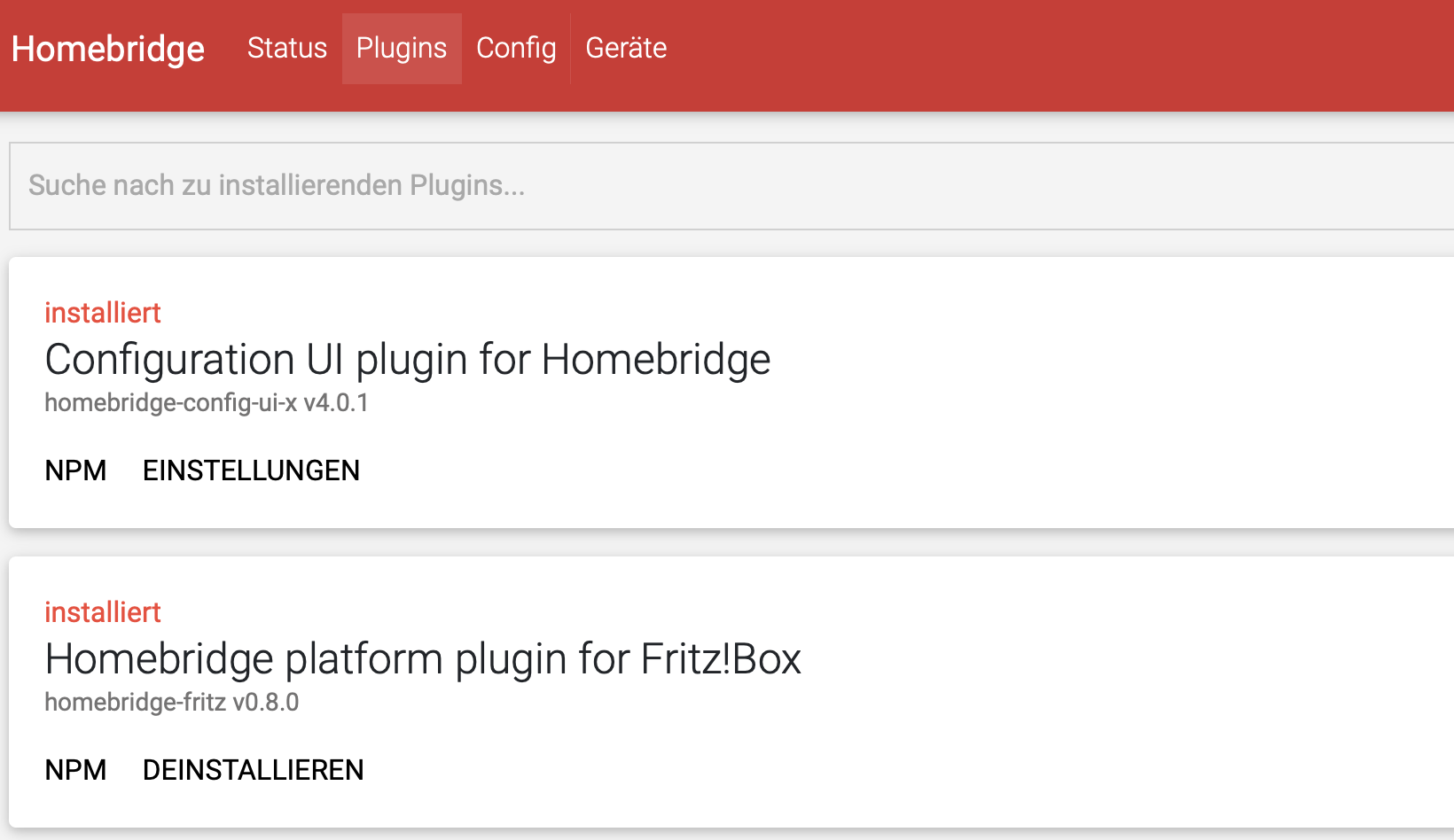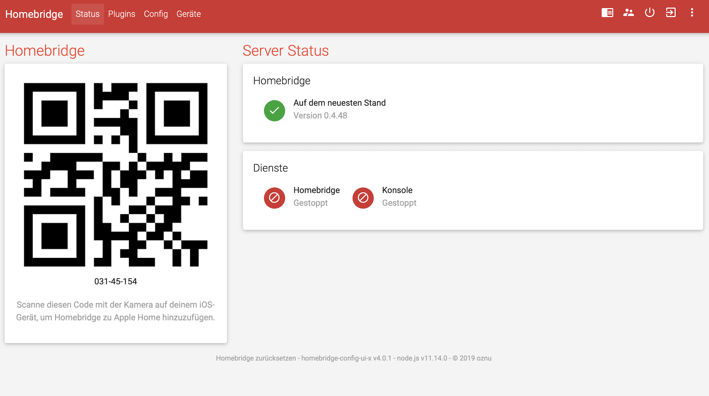Configuration UI plugin for Homebridge Version: homebridge-config-ui-x v3.11.0(was auch in der Anleitung steht)
