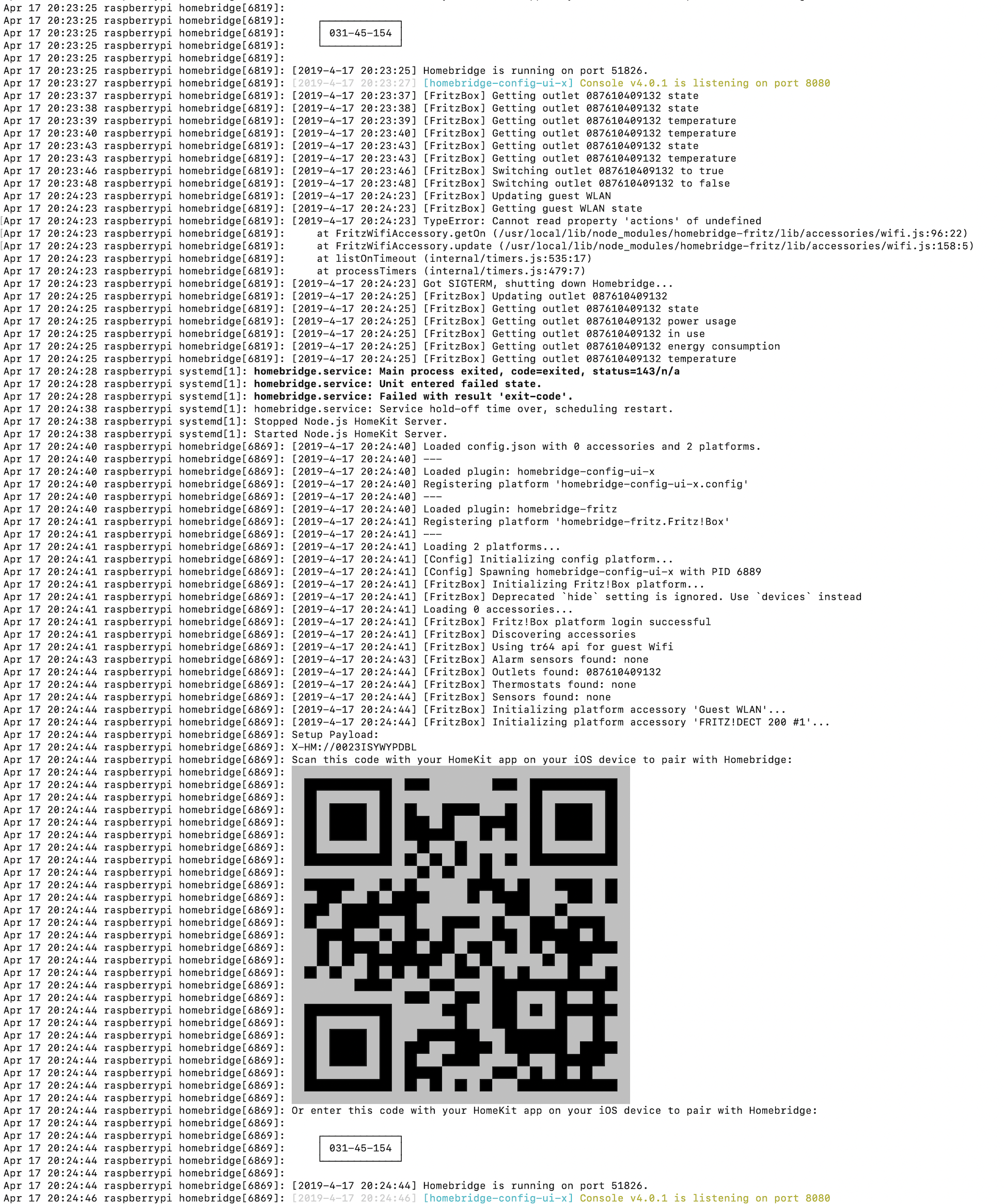 Apr 18 17:09:30 raspberrypi homebridge[3939]: [2019-4-18 17:09:30] [FritzPlatform] [ERROR] {