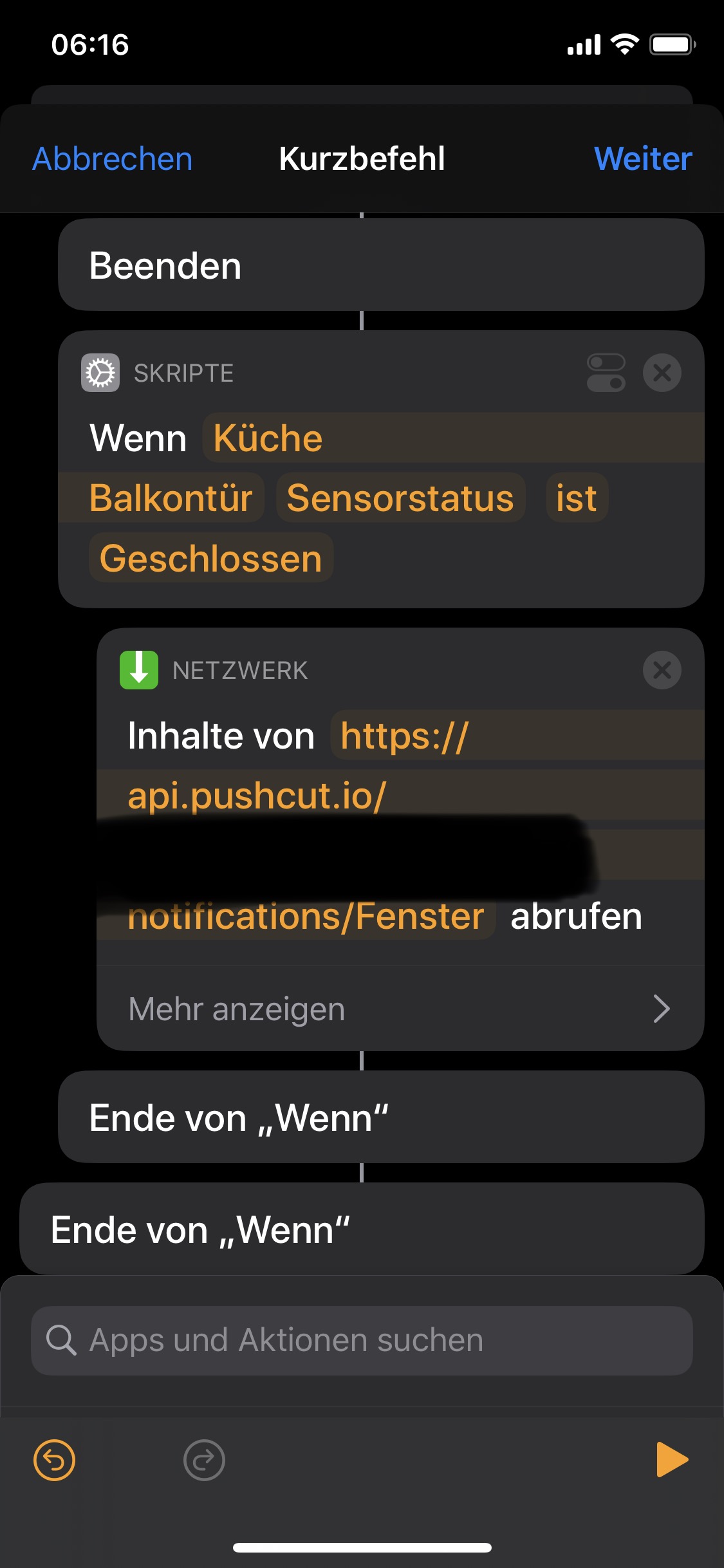 In kurzbefehle funktioniert der Test wie es soll. Der Befehl wird über HomeKit ausgelöst „wenn Balkontür offen“ - und da passiert genau garnichts. Weiß jemand zufällig warum?
