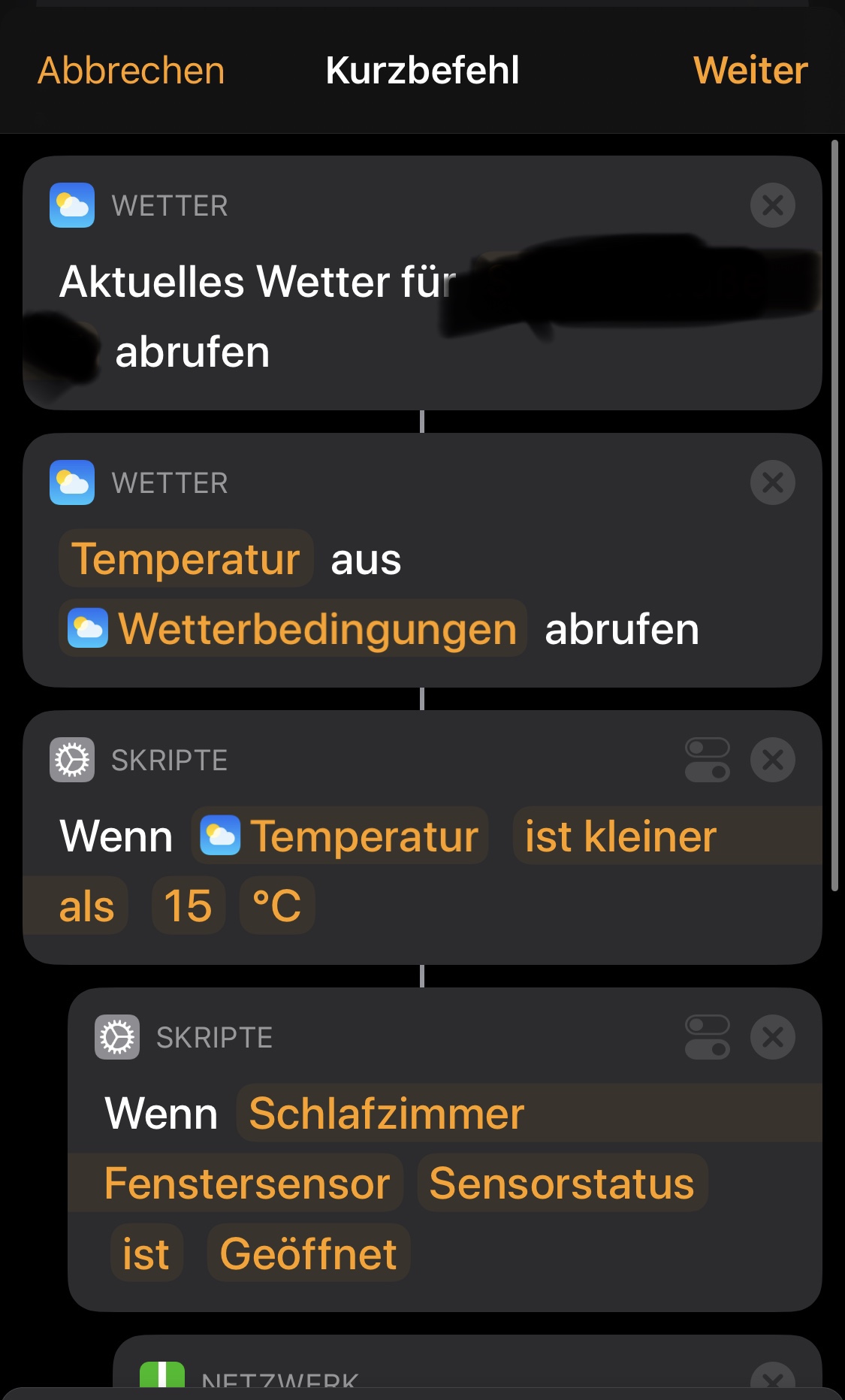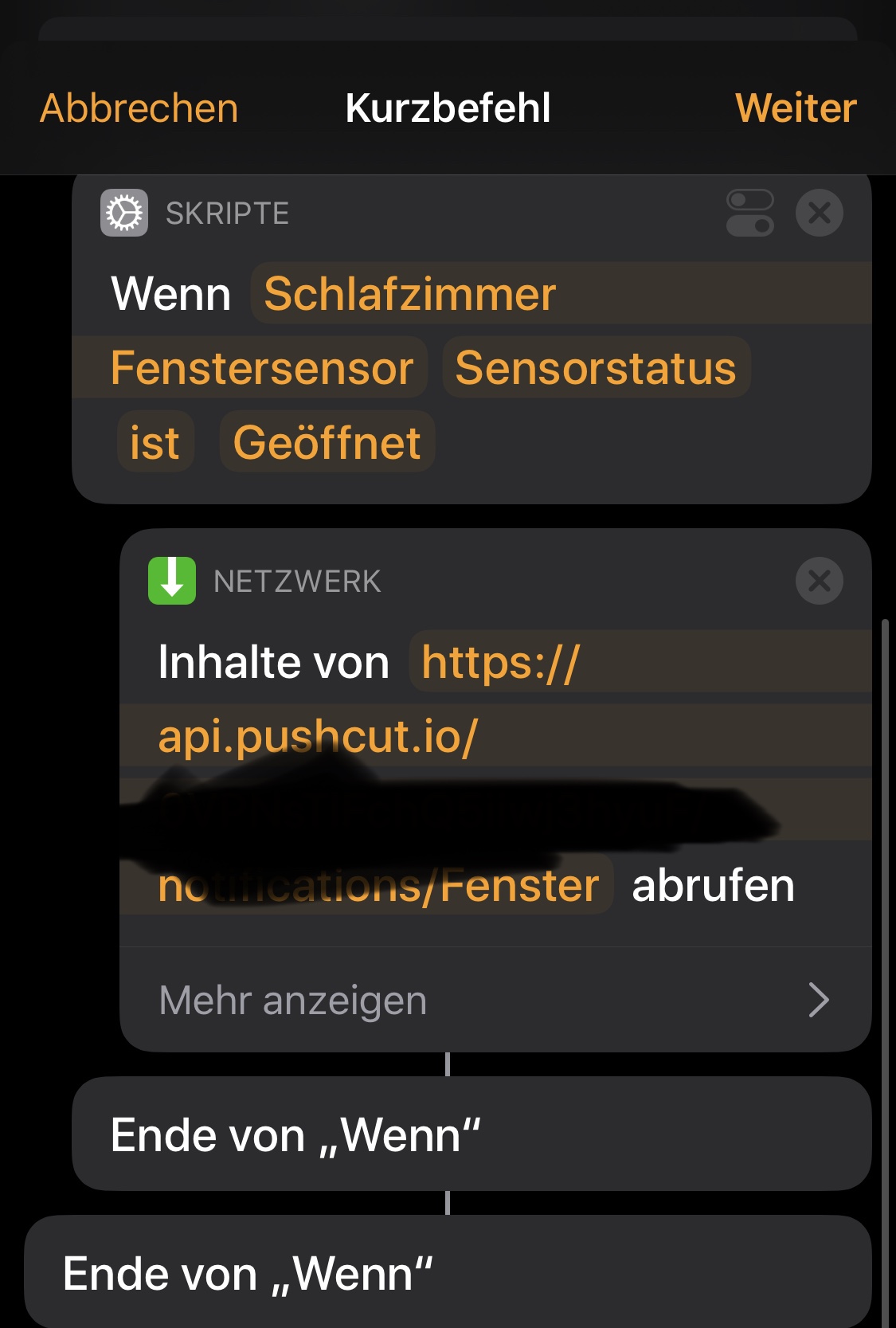Andere Kurzbefehl-Automationen laufen ja, zB die Steuerung meiner Thermostate wenn Fenster Auf/Zu über SSH.