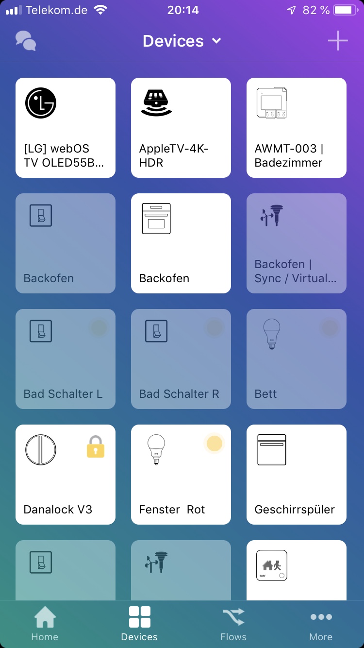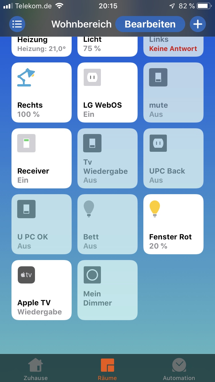 Ansichten der neuen App und 1 mal ein Bild aus Homekit