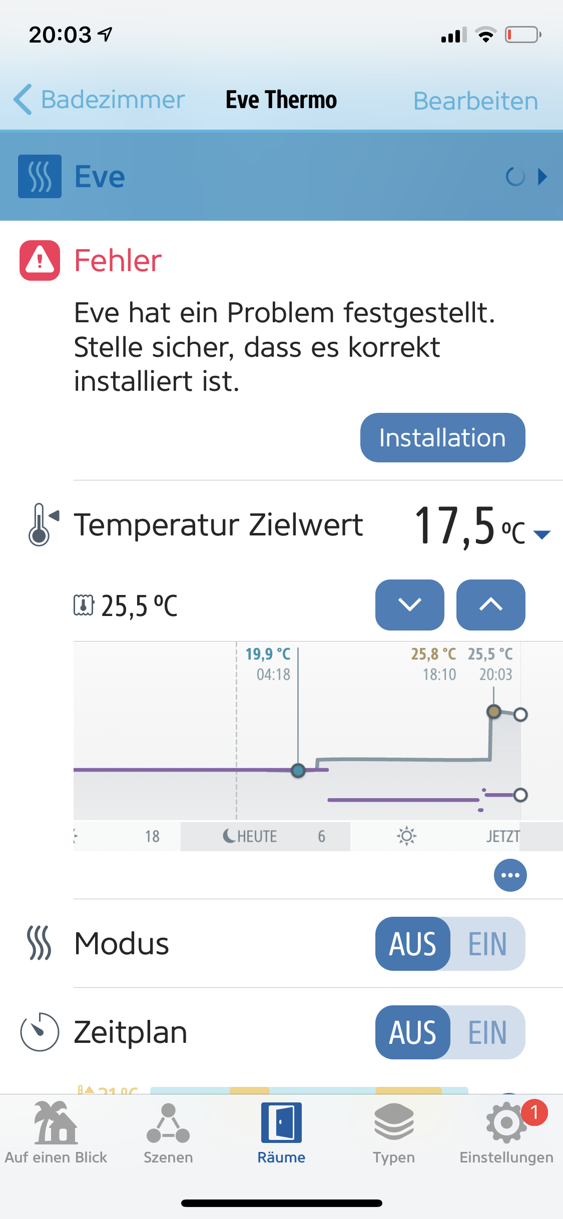 Danke für den Tip. Habe alles zurückgesetzt und nochmal neu eingerichtet. Bewusst nur eine Szene eingerichtet. Nun fängt es wieder an, das sich morgens um 4:40 Uhr die Temperatur selbst hochregelt. Jemand noch ne Idee?