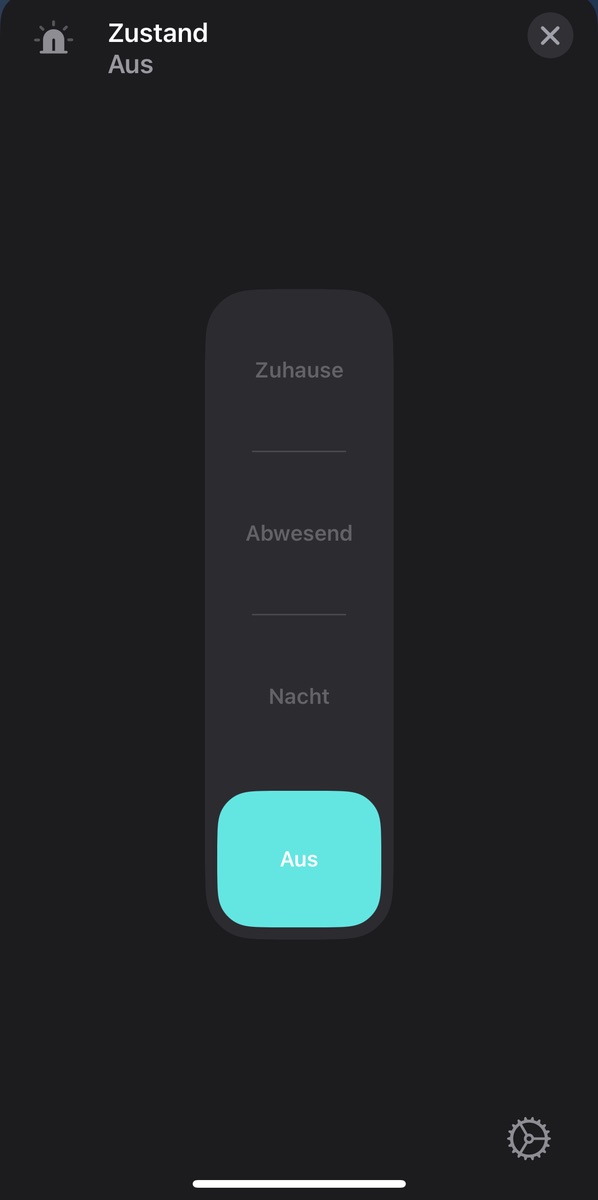 Wenn wir weg sind von Zuhause, ist der Schalter auf Abwesend und wenn ich komme auf Abwesend. Wenn ich auf Aus bin, und ich gehe, dann geht ber auf Abwesend. Also in meinen Augen wie er muss.