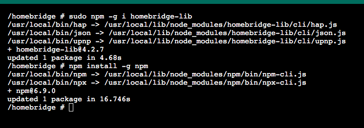 Es kommt auch keinen fehler. Mit dem code: sudo npm -g i homebridge-lib habe ich es versucht.