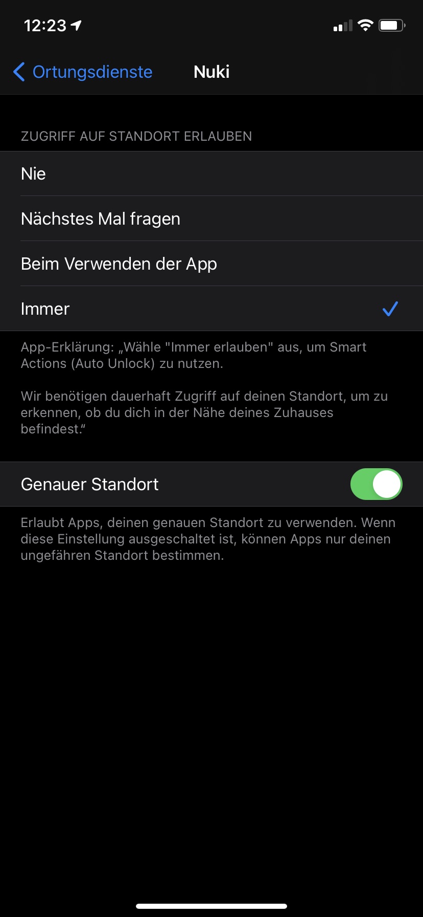 Ich würde gerne dass das Nuki wenn ich nachhause komme öffnet wenn es geschlossen ist ansonsten offen bleiben.