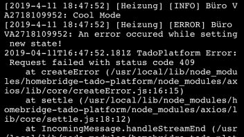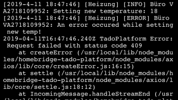 Apr 25 07:51:53 raspberrypi homebridge[20004]: [4/25/2019, 7:51:53 AM] [TadoPlatform] [INFO] **************************************************************
